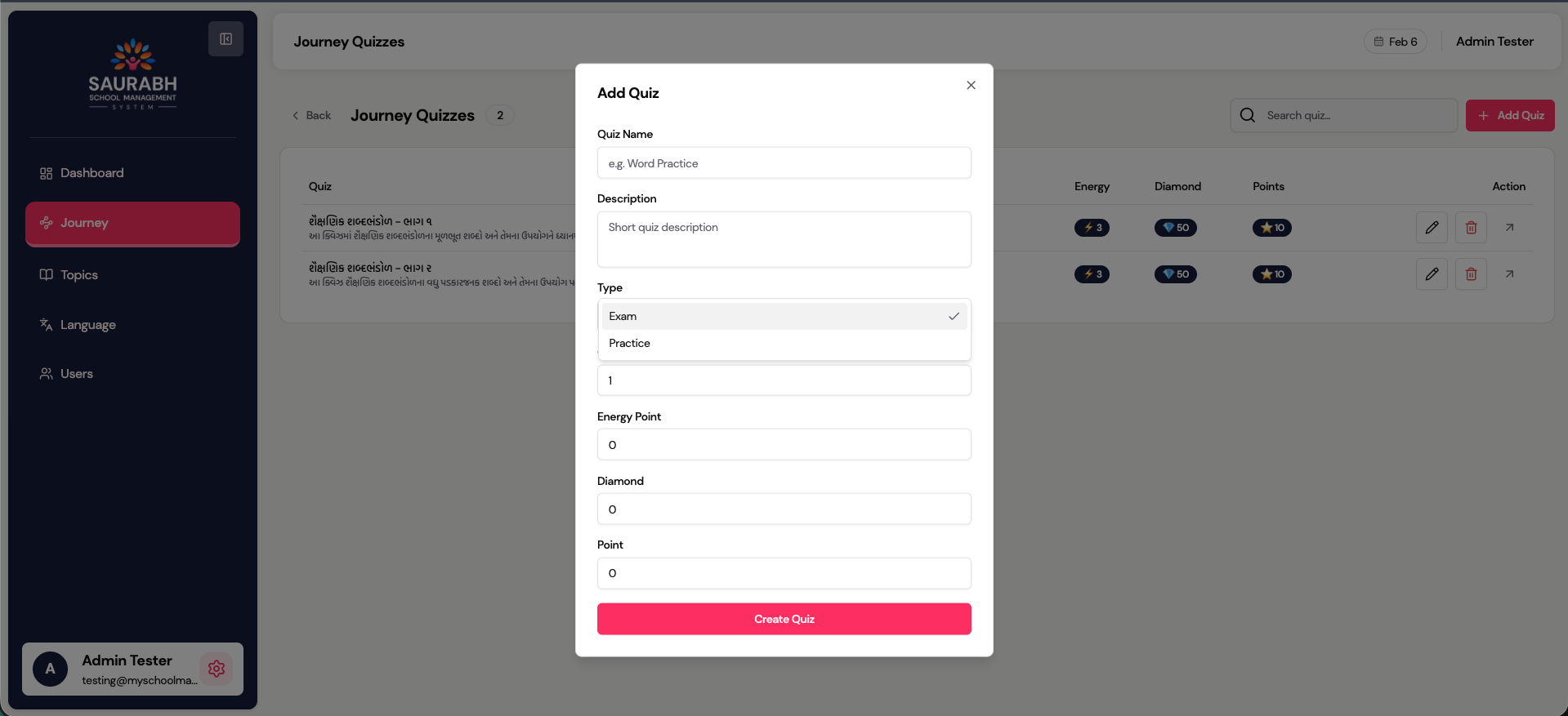 Journey → Quizzes → Questions4.7 Create a New Quiz