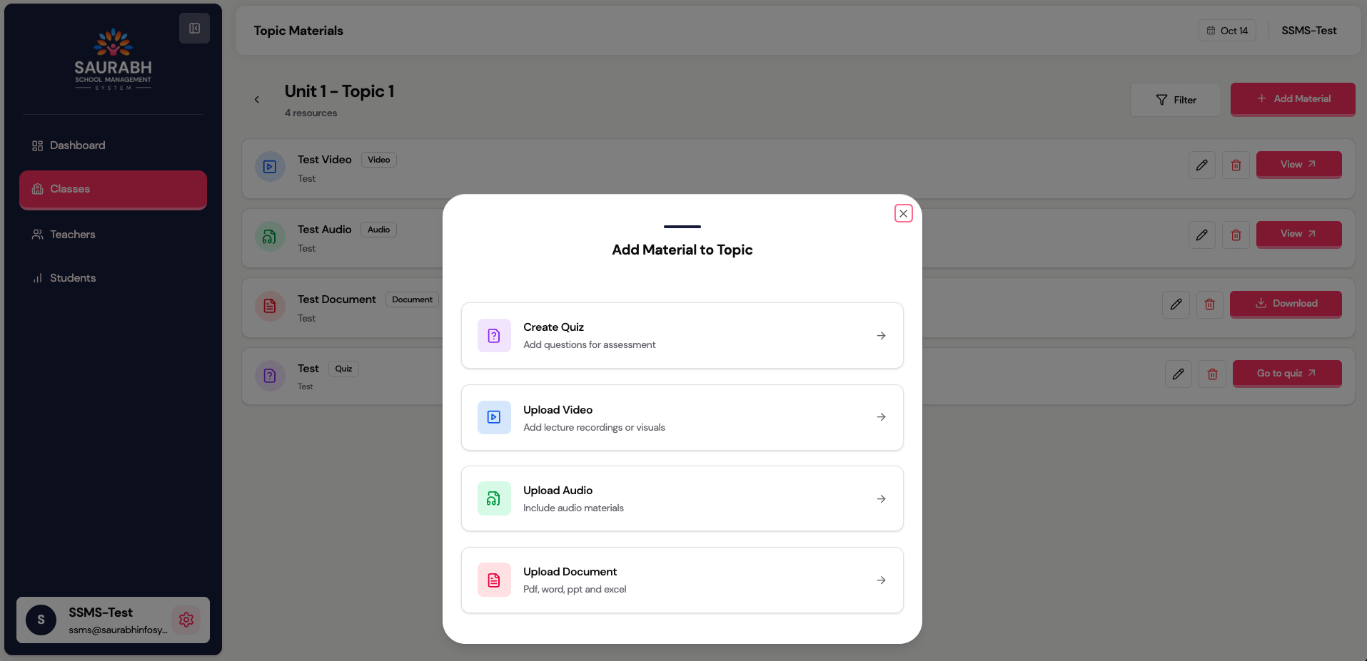 - Admin & Teacher: Can create, edit, and manage units, topics, materials, and quizzes.